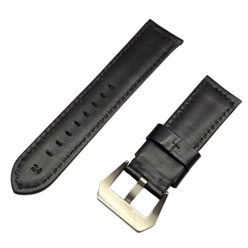 Bracelete em pele preta lisa almofadada. Disponível nas medidas: 18, 20, 22, 24 e 26MM.