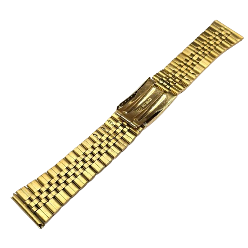 Bracelete em aço dourado com fecho de báscula e chapa comprida. Disponível nas medidas: 12, 14, 16, 18, 20, 22 e 24MM.