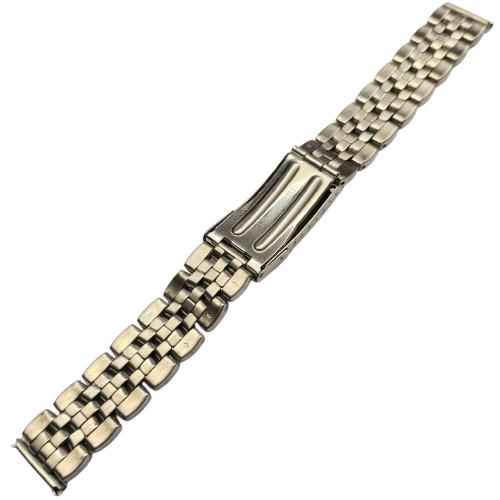 Bracelete em aço prateado com fecho de báscula e chapa comprida e patilha de segurança. Disponível nas medidas: 24 e 26MM.