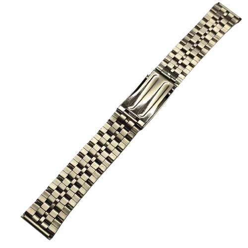 Bracelete aço prateado com fecho báscula e chapa comprida. Disponível na medida: 20MM.
