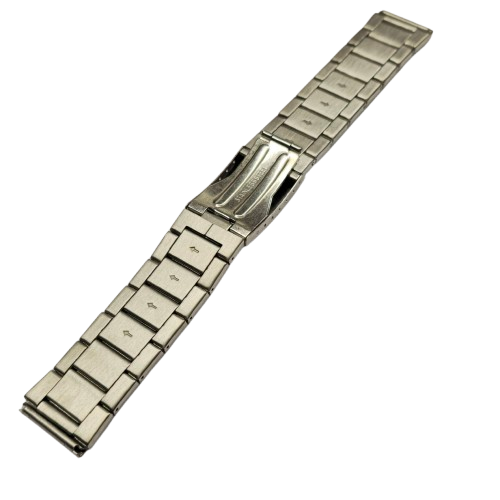 Bracelete em aço semi-sólido com fecho de báscula e chapa comprida. Disponível na medida: 22MM