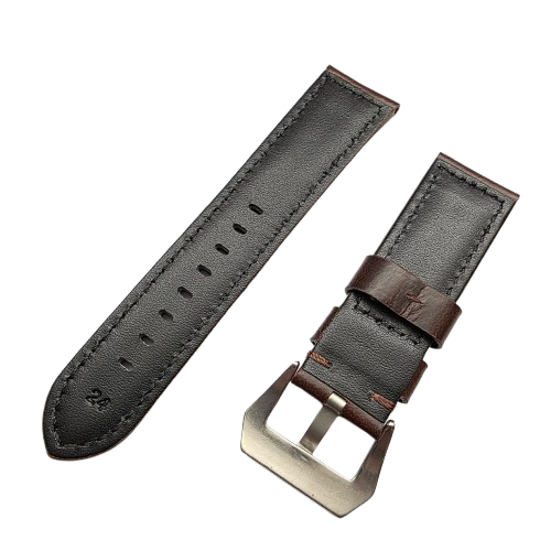 Bracelete em pele na cor castanho e almofadada lisa. Disponível nas medidas: 18, 20, 22, 24 e 26MM