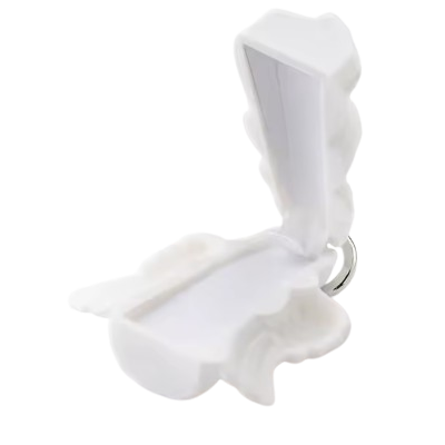 Caixa para fio ou pulseira em forma de anjo na cor branca. Medidas: 6X8CM.