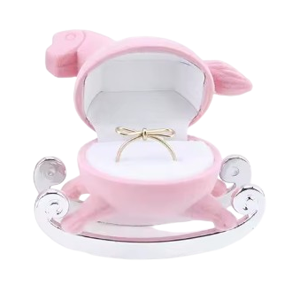 Caixa para anel em forma de cavalo cor de rosa em forma de baloiço.