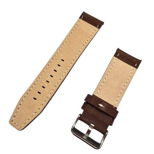 Bracelete em pele castanho com costura a branco. Disponível nas medidas: 18, 20, 22 e 24MM.