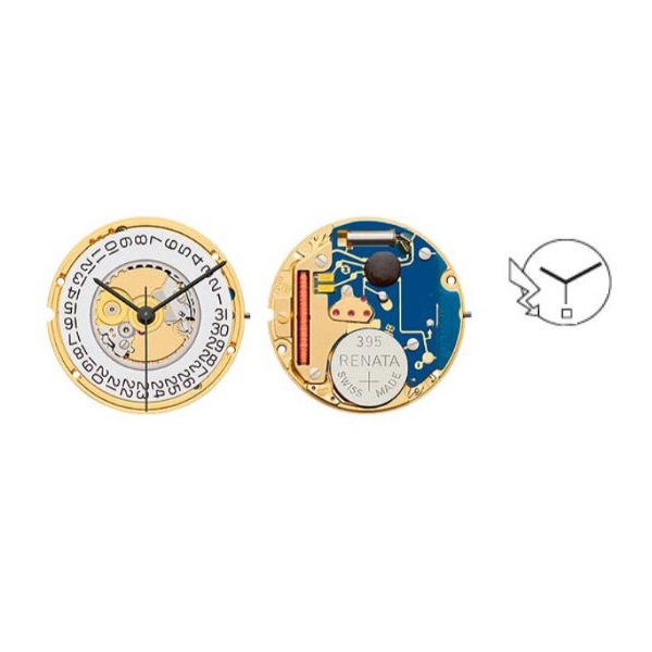Movimento ETA 955412, 3 ponteiros e calendário às 6H.