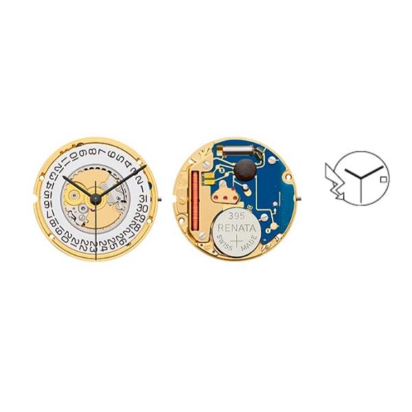 Movimento ETA 955412, 3 ponteiros e calendário às 3H.