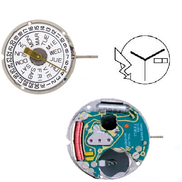 Movimento ETA 956124, calendário duplo às 3H.