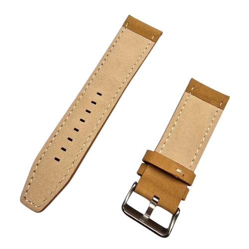 Bracelete em pele castanho mel com costura a branco. Disponível nas medidas: 18, 20, 22 e 24MM