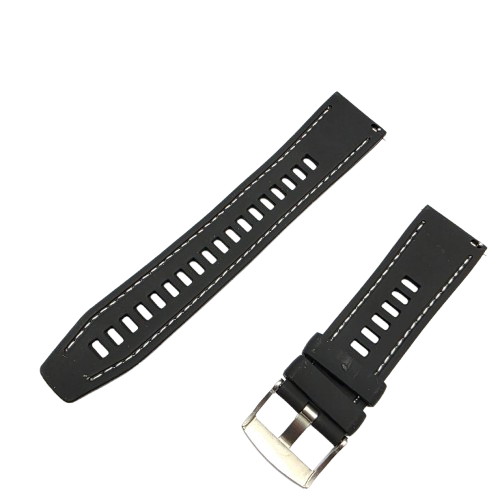 Bracelete silicone e nylon na cor Preto com costura branca e com mola fácil na medida 22MM.