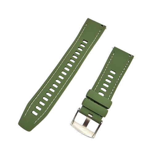 Bracelete silicone e nylon na cor Verde com costura branca e com mola fácil na medida 22MM.