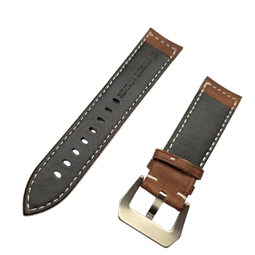 Bracelete em pele castanho com costura branca. Disponível nas medidas: 18, 20, 22 e 24MM